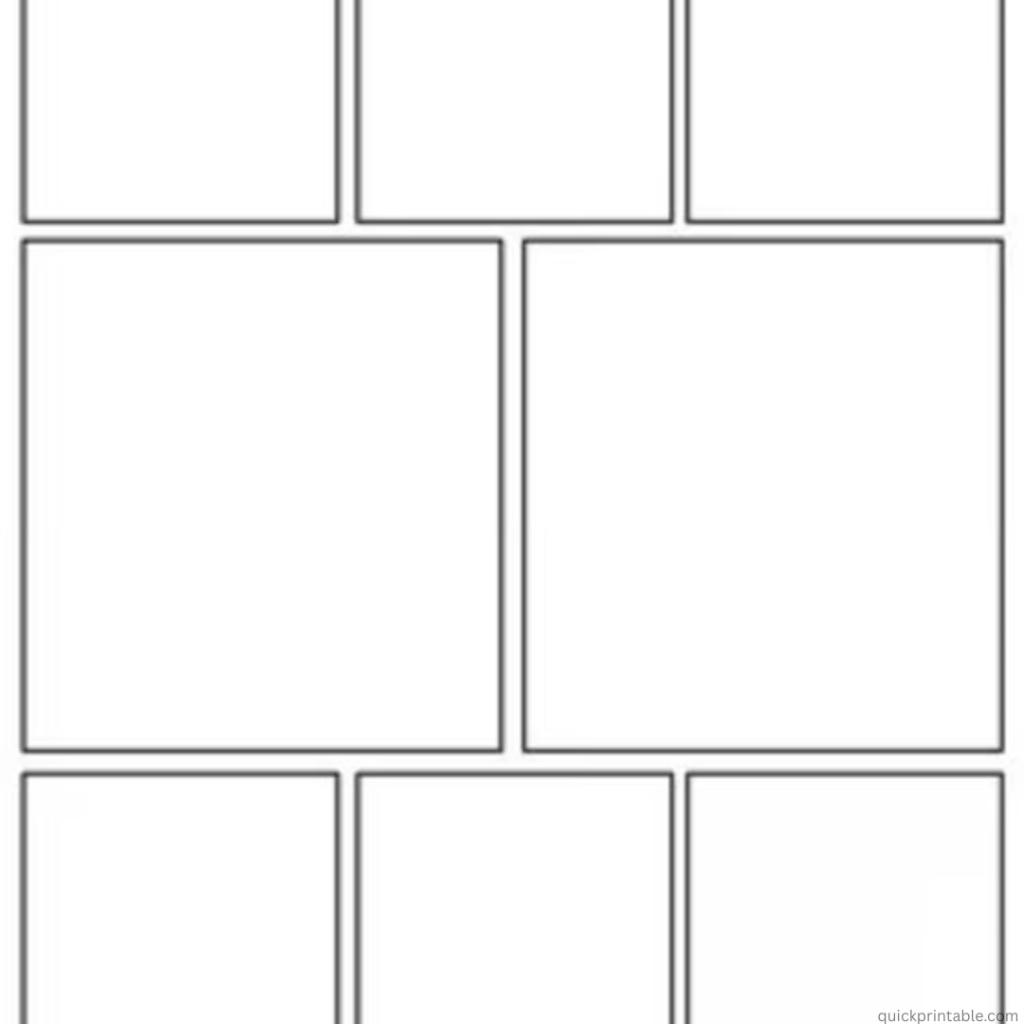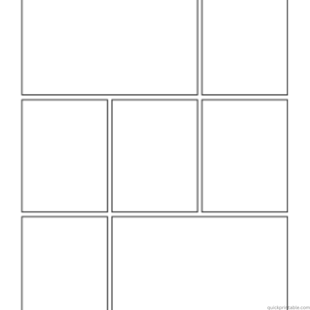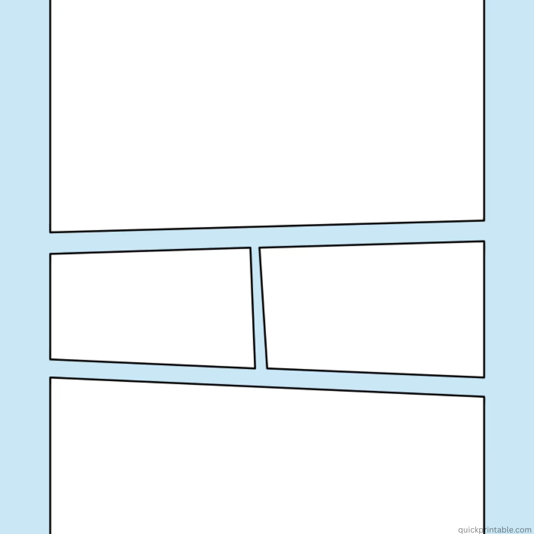 Comic layout featuring oversized opening and closing panels adds strong visual impact to every story. Perfect for single or multi-page comics, adaptable to any genre or style. This printable comic page design includes large starting and ending panels, giving your story a powerful visual flow from the first frame to the last.