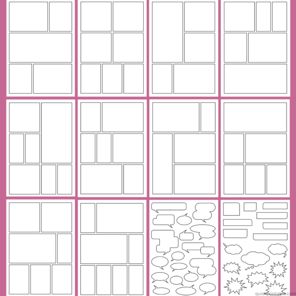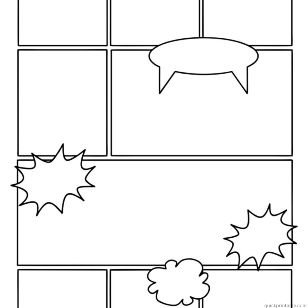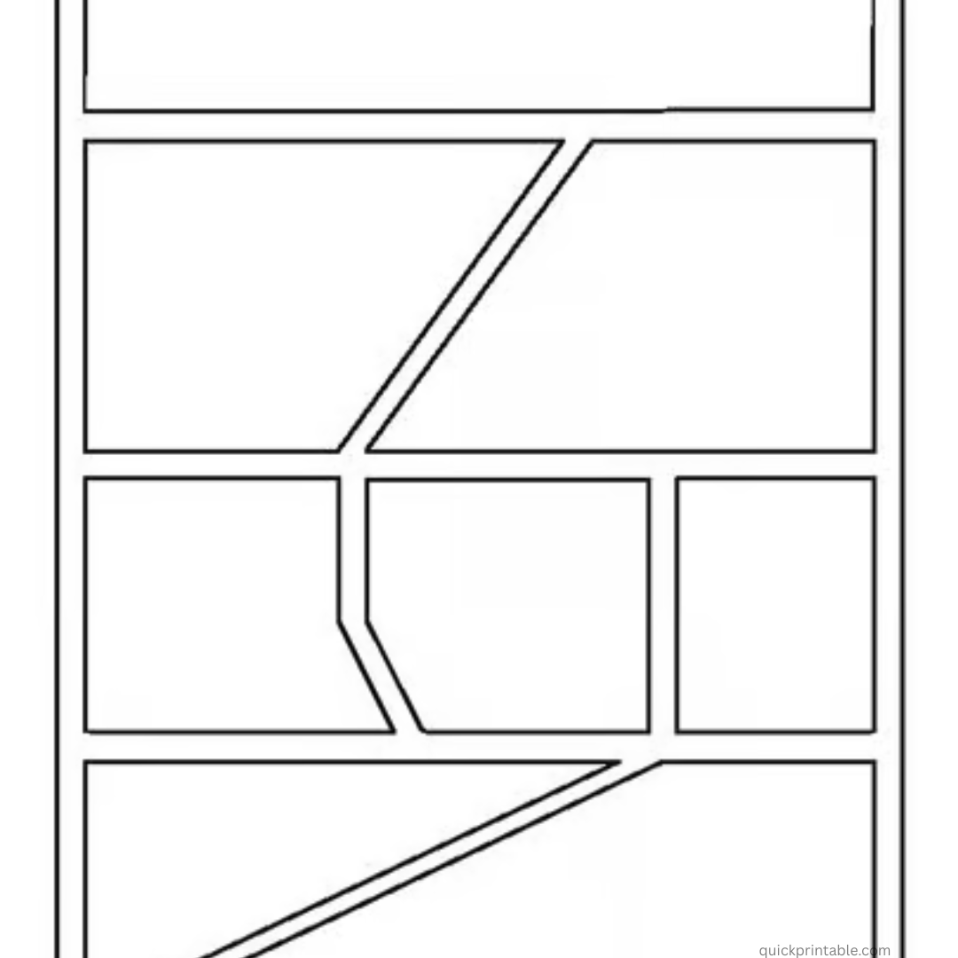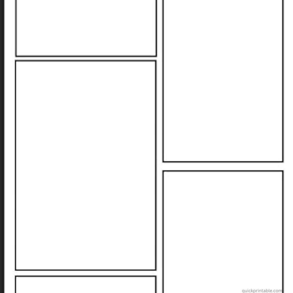 Comic layout featuring oversized opening and closing panels adds strong visual impact to every story. Perfect for single or multi-page comics, adaptable to any genre or style. This printable comic page design includes large starting and ending panels, giving your story a powerful visual flow from the first frame to the last.